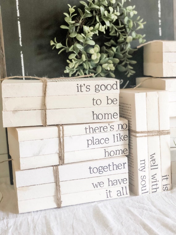 Farmhouse Home Decor Neutral Home Decor Farmhouse Neutral Decor Home Decor Gifts Stacked Stamped Books Farmhouse Decor