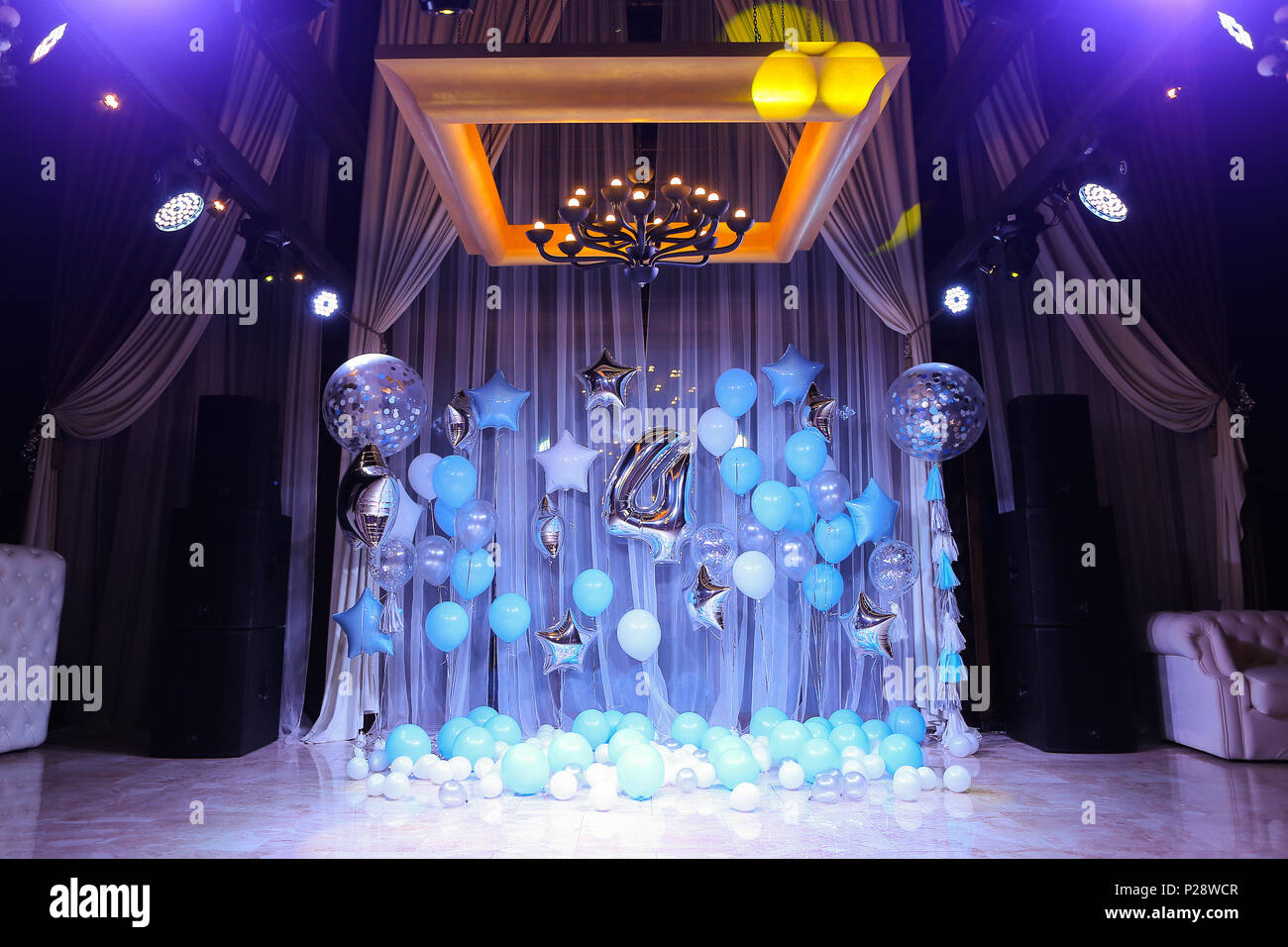 Decorated Amazing Scene With Blue Balloons And Number 4