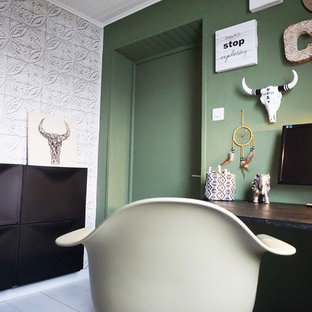 75 Beautiful Laminate Floor Home Office With Green Walls